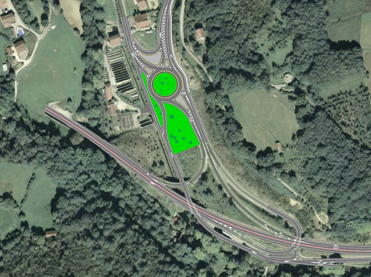Las conexiones de la carretera N-121-A con la bifurcación de la N-121-B y con la carretera NA-1210, al sur de Oronoz-Mugairi, se modificarán con la construcción de una rotonda que simplificará y aumentará la seguridad de los cambios de vía.