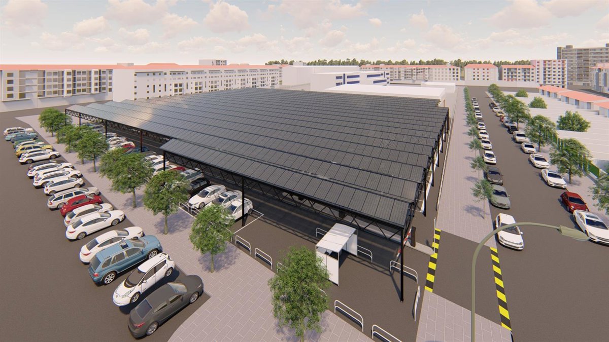 La instalación la conforma una estructura metálica de 2.736 paneles solares y se calcula que se dejarán de emitir 337 toneladas de CO2 al año. El anteproyecto incluye estaciones de recarga rápida y semirrápida. Las 230 plazas de aparcamiento quedarán cubiertas, con la consiguiente comodidad tanto para los vehículos como para las personas usuarias. Los paneles generarán energía limpia para que, además de cubrir las necesidades del propio aparcamiento, pueda ser autoconsumida por los vecinos y vecinas de la zona e incluso se plantea el desarrollo de una comunidad energética.