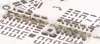 El parque central está delimitado al norte por la avenida de Cataluña en su prolongación en Santa María la Real y discurre longitudinalmente hasta el final de la urbanización de Lezkairu, es decir, hasta la calle Valle de Egüés y la plaza de la Igualdad. El parque tendrá además un acceso peatonal en su zona oeste a través de un paso subterráneo en la rotonda de la calle Tajonar. Será un parque continuo, a modo de bulevar central del barrio, que solo estará atravesado por la avenida Juan Pablo II.