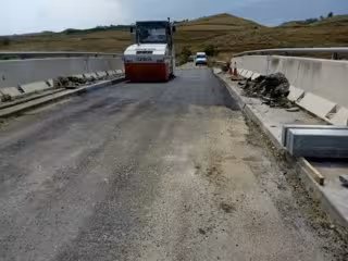 Imagen de los trabajos de asfaltado en el paso elevado sobre las vías del tren en Lodosa - GOBIERNO DE NAVARRA
