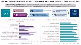 En total, fueron 150 las actuaciones gestionadas en octubre por los departamentos del Gobierno de Navarra, una más con respecto al mes de septiembre. El nuevo proyecto deriva de la dotación adicional para el PERTE de Digitalización del ciclo del agua, para el que en la plataforma CoFFEE de gestión se prevé crear un nuevo subproyecto, explican en un comunicado desde el Ejecutivo foral.
