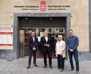 Joseba Asiain, el vicepresidente Félix Taberna, Itziar Ayerdi y Luis Campos, ante la Oficina de Atención Ciudadana de Pamplona - GOBIERNO DE NAVARRA