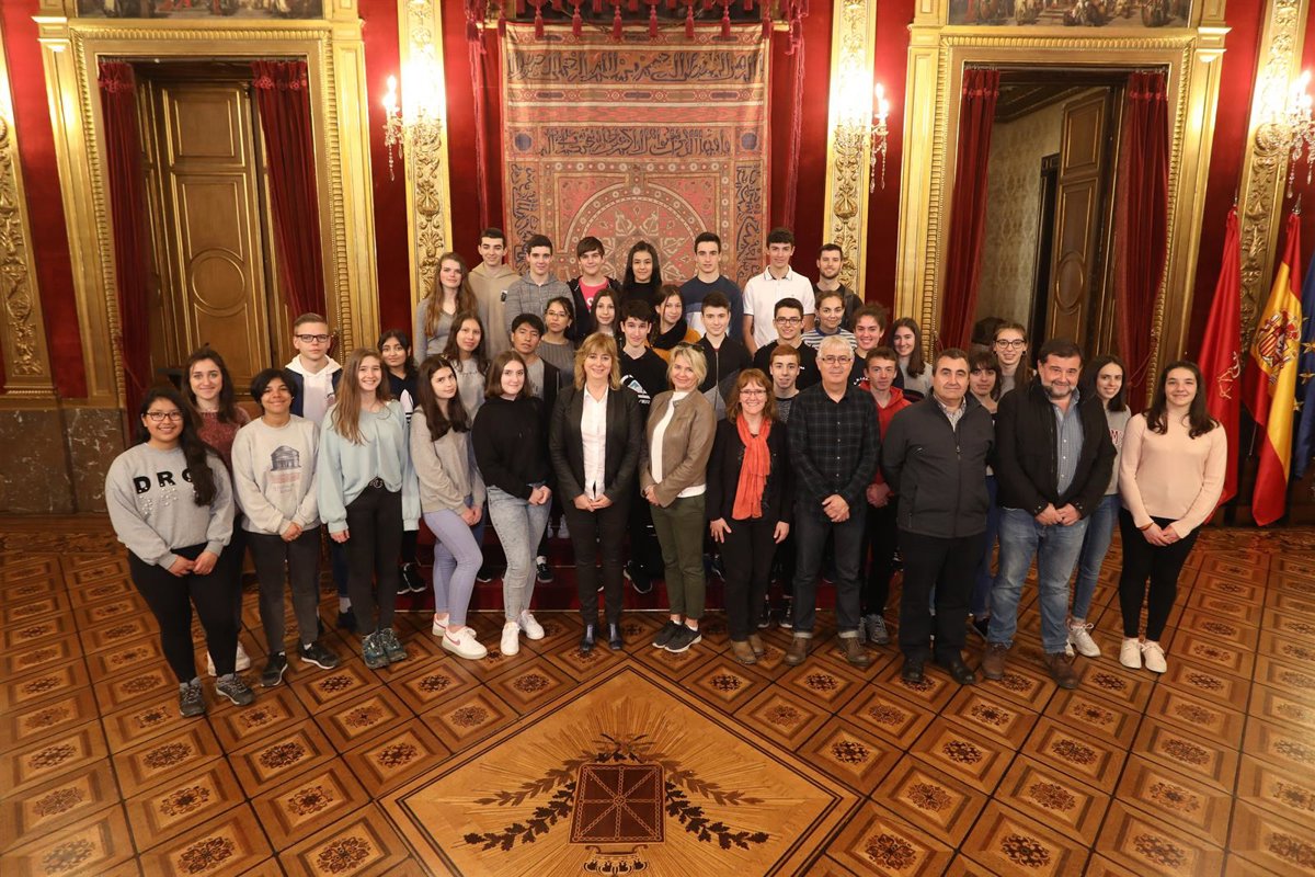 A la recepción con la consejera han acudido 34 alumnos y alumnas de 4 de la ESO y 1 de Bachillerato del IES Navarro Villoslada, de Pamplona, acompañados de su profesora Adriana Rípodas y de David Martínez Lucea, así como 4 alumnos del instituto austríaco Bundeshandelsakademie und Budeshadelsschule, de Viena, junto a su profesora Petra Hochleitner.
