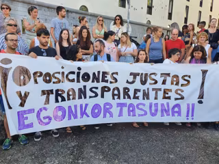 La plataforma, que se ha concentrado con una pancarta en la que se leía '¡Oposiciones justas y transparentes! Egonkortasuna! (estabilidad)', ha afirmado que "muchas personas se han visto afectadas negativamente con el proceso" y ha criticado que los docentes "se enfrentan a un proceso de selección opaco, incierto y subjetivo". "Opositores y opositoras que han preparado las pruebas a conciencia han suspendido. Además, hay un número elevado de ceros, a pesar de tener muchos y muchas más de 10 años de experiencia. Eso provoca consecuencias muy graves en las listas de contratación", ha asegurado.