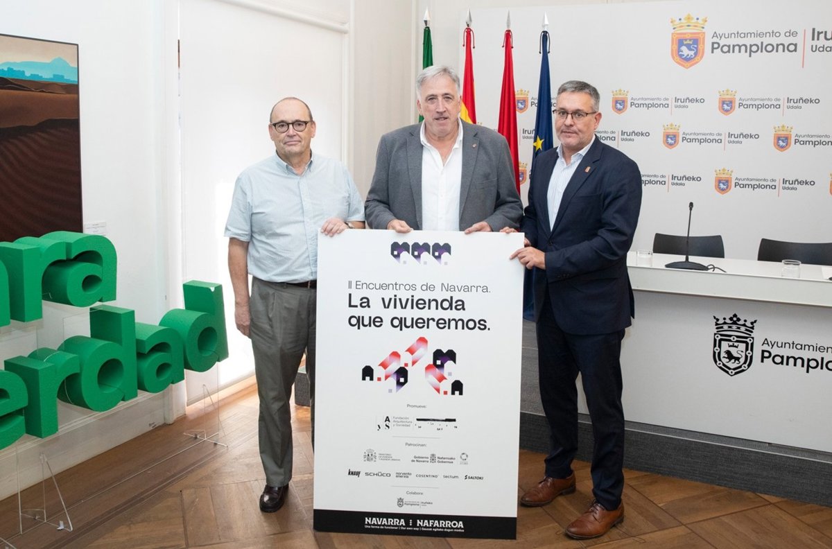 El alcalde de Pamplona, Joseba Asiron, ha presentado la iniciativa junto con el consejero de Universidad, Innovación y Transformación Digital del Gobierno de Navarra, Juan Luis García, y el arquitecto Patxi Mangado, impulsor de los encuentros a través de la Fundación Arquitectura y Sociedad, entidad sin ánimo de lucro creada en 2008 por Mangado.