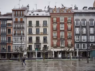 Plaza del Castillo prácticamente vacía durante la jornada en la que las temperaturas han bajado estrepitosamente en el segundo día de la entrada en vigor de la limitación total de movimientos salvo de los trabajadores de actividades esenciales - Eduardo Sanz - Europa Press - Archivo