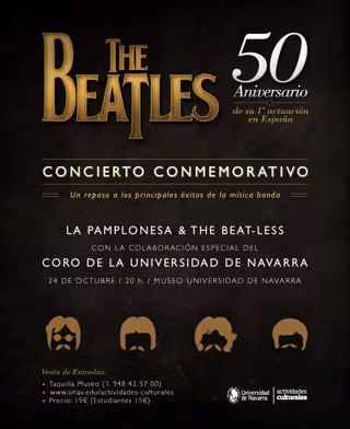 La Pamplonesa, el grupo tributo The Beat-less y el coro de la Universidad de Navarra recordarán el primer concierto de los Beatles en España con una actuación, el próximo 24 de octubre, en el Museo Universidad de Navarra.