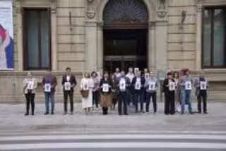 Parlamentarios forales se han concentrado este martes a las puertas de la Cámara navarra en señal de repulsa por el asesinato machista cometido el domingo en Alicante.