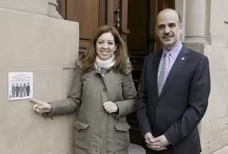 El Parlamento de Navarra ha colocado un pictograma en la fachada de su edificio para que las personas con autismo puedan comprender la actividad y las funciones que en él se desarrollan.