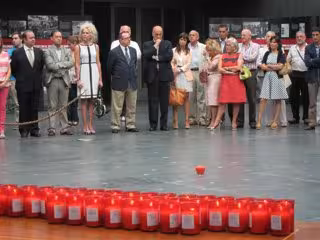 El Parlamento de Navarra ha recordado a las víctimas del terrorismo de ETA en un acto celebrado en el atrio de la Cámara, que desde este miércoles acoge la exposición fotográfica '40 días rojos. Asesinatos de ETA en Navarra. Tres décadas de terrorismo en imágenes'. Se han colocado 42 velas en recuerdo a las víctimas de la Comunidad foral y se ha guardado un minuto de silencio.