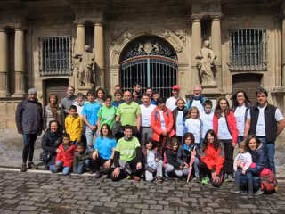 Varios de los componentes de los diez equipos navarros que participarán el próximo 20 de mayo en Vitoria en el VII Oxfam Intermón Trailwalker han realizado, este domingo, un recorrido simbólico del Camino de Santiago y se han reunido a las 13.00 horas en la plaza del Ayuntamiento de Pamplona para dar a conocer este evento solidario y animar a la ciudadanía a realizar un donativo.