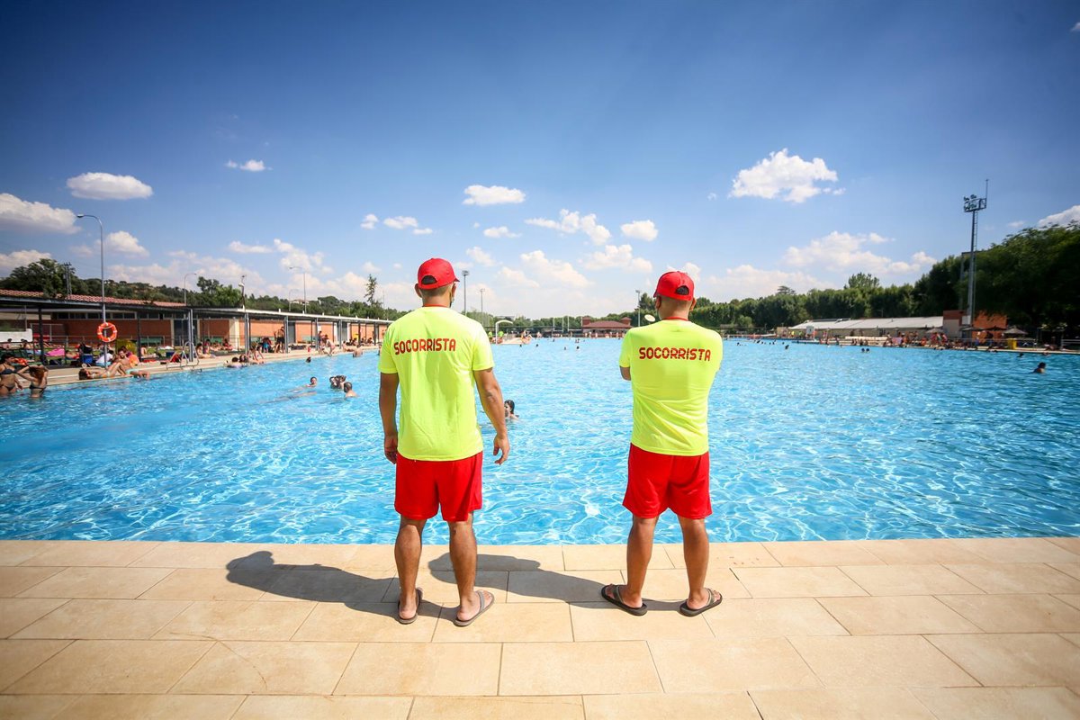 Archivo - Dos socorristas vigilan una piscina. - Ricardo Rubio - Europa Press - Archivo