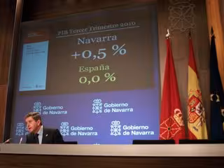 El Producto Interior Bruto (PIB) de Navarra ha crecido en el tercer trimestre de 2010 en un 0,5 por ciento, un dato que, según el consejero de Economía y Hacienda del Gobierno foral, Álvaro Miranda, "consolida el crecimiento de la economía navarra en los próximos trimestres". Asimismo, con esta cifra, la región alcanza una tasa de subida interanual del 1,6 por ciento.