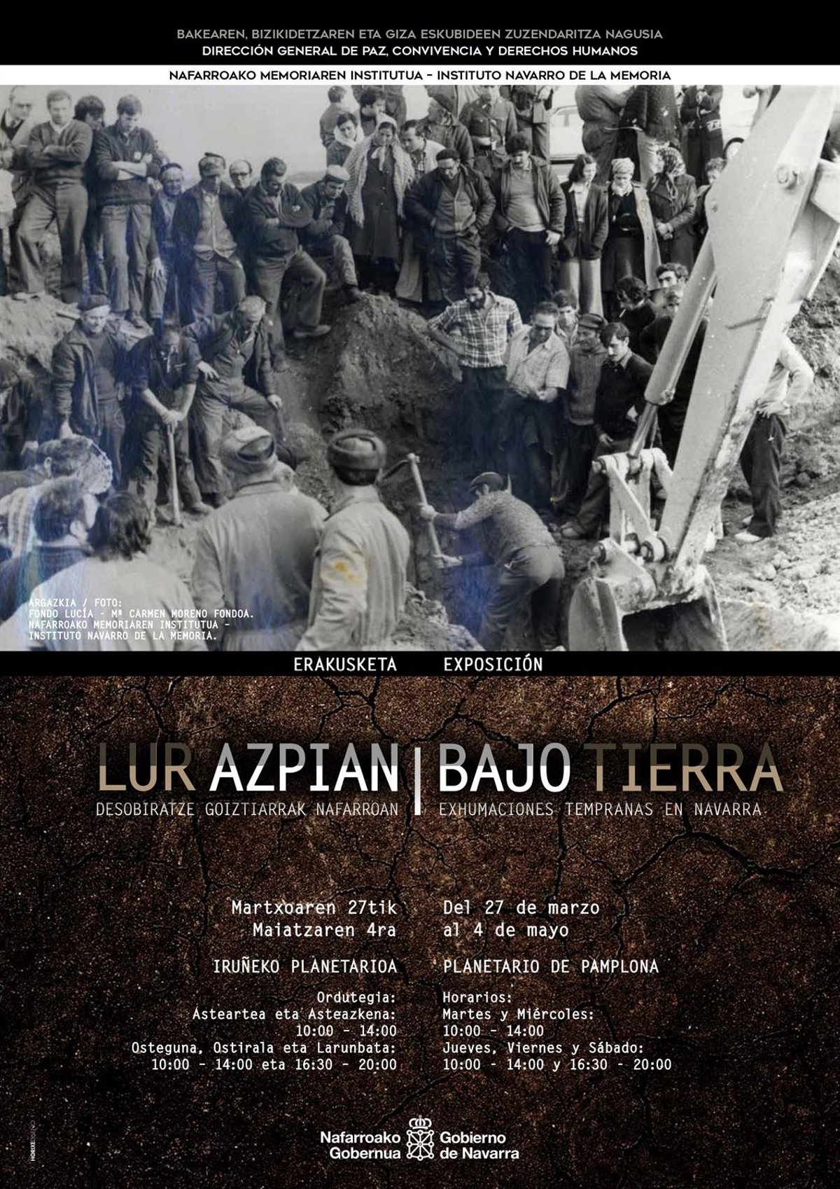 El próximo miércoles 27 de marzo se abrirá al público la exposición 'Bajo tierra-Lur azpian', con la que el Gobierno de Navarra pretende rememorar el proceso de exhumaciones tempranas que se llevó a cabo en muchas localidades navarras, sobre todo de la Ribera, principalmente entre los años 1978 y 1980.