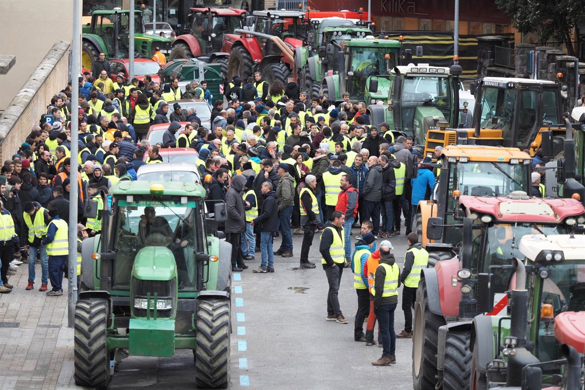 Agricultores y tractores se concentran frente al departamento de Medio Ambiente y Desarrollo Rural del Gobierno Navarra - Eduardo Sanz - Europa Press