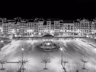 El semestre concluye en el mismo sitio que comenzó, en la plaza del Castillo, con una imagen curiosa, tomada desde el centro, desde el quiosco, a modo de panorámica circular en la que se ven los detalles artísticos del propio quiosco y los edificios que delimitan la plaza. La imagen es de Íñigo Aranguren Osinaga.
