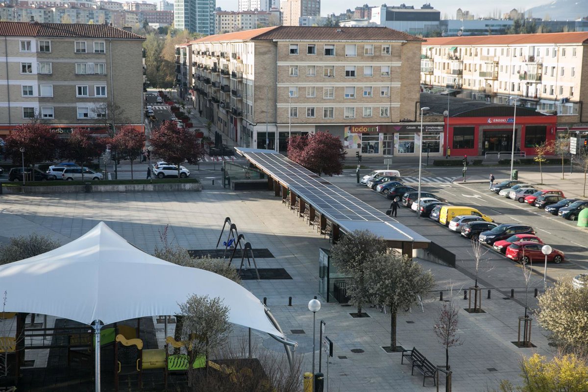 Dos nuevas instalaciones han cambiado la fisonomía de la plaza del Doctor Gortari en el barrio de San Jorge de Pamplona. La Gerencia y la Comisión de Urbanismo del Ayuntamiento han visitado este miércoles la nueva instalación fotovoltaica de autoconsumo ubicada en la parte superior de la pérgola de la plaza y la zona de juegos infantiles que se ha cubierto recientemente. El Ayuntamiento de Pamplona ha invertido en ambas 53.592,78 euros y 79.200 euros, respectivamente.