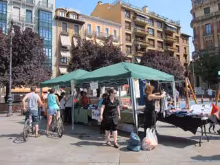 Asociaciones y colectivos han organizado este sábado en la plaza San Francisco de Pamplona una mercado social y de trueque, en el que los visitantes pueden encontrar puestos de exposición e información de alternativas económicas que "promueven un mercado social que funciona con criterios éticos, democráticos, ecológicos y solidarios".