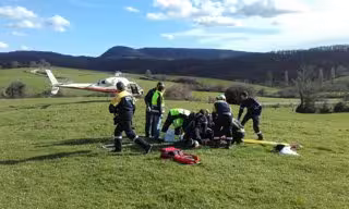 El herido, que presentaba politraumatismos y una posible fractura de fémur, fue evacuado en la ambulancia y posteriormente transferido a una medicalizada que salió al encuentro y que completó el traslado de la víctima al Complejo Hospitalario de Navarra.