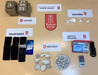 Como resultado de los registros la Policía Foral se incautó de un total de 600 gramos de heroína, 2,5 kilogramos de hachís, 30 gramos de cocaína, así como básculas de precisión, teléfonos móviles y varios vehículos utilizados para la comisión de los delitos.
