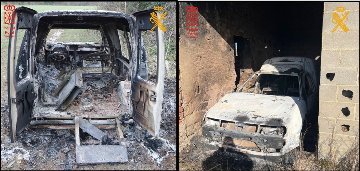 La investigación se inició a raíz de una denuncia presentada en el Puesto de la Guardia Civil de Los Arcos (Navarra) por la sustracción de una furgoneta que, según se acreditó posteriormente, habría sido utilizada esa misma noche para impactarla contra un bar en La Rioja y acceder al interior, donde se sustrajeron máquinas de juego y la recaudación. Días después, el vehículo fue localizado totalmente calcinado en un paraje cercano, explican ambos cuerpos en una nota conjunta.