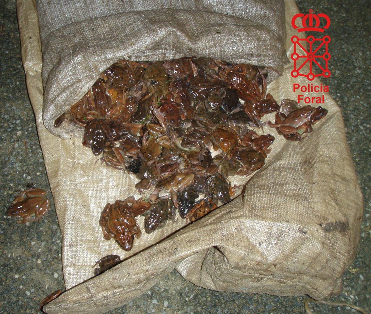 La patrulla, según ha explicado el Ejecutivo foral, observó a dos personas que, en la oscuridad y haciendo uso de linternas, realizaban las capturas de las ranas. Posteriormente, cuando se dirigían a su vehículo, fueron interceptados y los agentes comprobaron que portaban 265 ejemplares de esta especie repartidos en una bolsa de tela y en los bolsillos de un chubasquero. Tras realizar el conteo, los animales fueron devueltos a su medio natural para evitar su muerte.