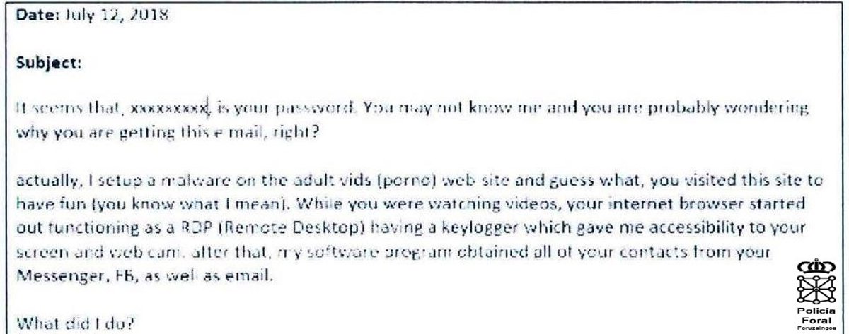 Ejemplo de mail utilizado en el chantaje. - POLICÍA FORAL - Archivo
