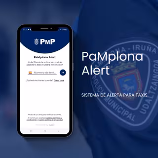'PaMplona Alert' es una aplicación móvil que conecta directamente con el Centro de Coordinación (CECOP) de Policía Municipal. Con el simple hecho de pulsar un botón, el taxi pasa a ser geolocalizado, de forma que pueden derivarse a su ubicación las patrullas necesarias para atenderle. Este recurso de seguridad se ha implantado en respuesta a la demanda del sector del taxi, ante algunas situaciones vividas.
