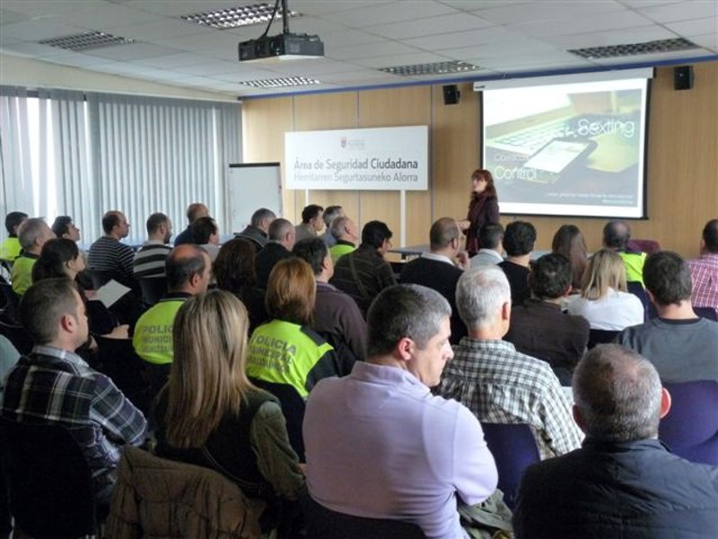 La psicóloga especialista en violencia de género y prevención Ianire Estébanez ha impartido un Taller de Prevención de la Violencia de Género en Redes Sociales a responsables policiales y componentes de las principales unidades de intervención y atención en esta materia del cuerpo de Policía Municipal de Pamplona, alrededor de 40 personas.
