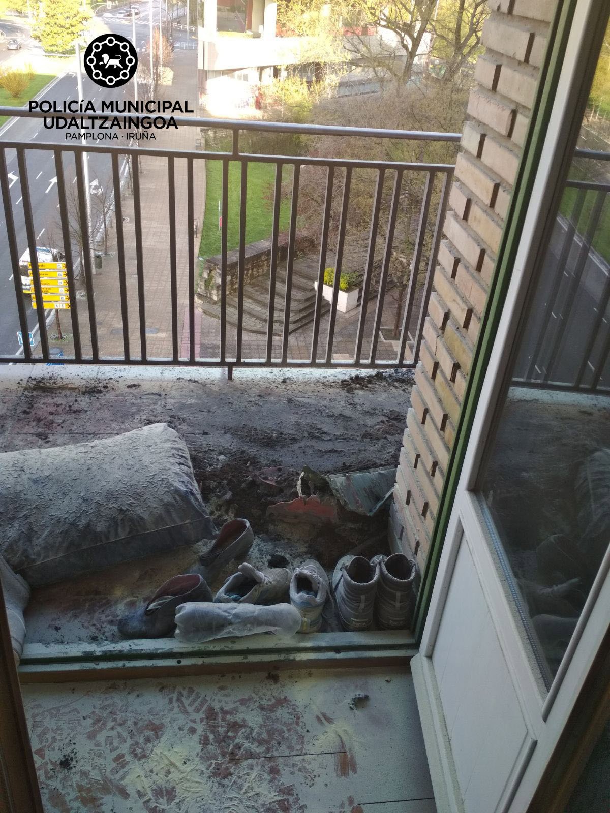 A las 09.20 horas de ayer sábado fue requerida la presencia de la Policía Municipal de Pamplona y efectivos de bomberos en un primer piso de la calle Julián Arteaga ya que un viandante estaba viendo un pequeño incendio en una terraza.
