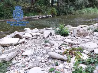 Granada de mortero encontrada junto al río Arga, en las inmediaciones del cementerio de Pamplona - POLICÍA NACIONAL