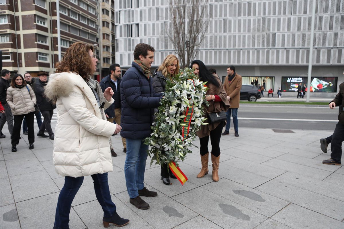 La ofrenda floral ha tenido lugar ante el Monumento a las Víctimas del Terrorismo, en la plaza Baluarte, donde los dirigentes 'populares' han colocado una corona de flores.