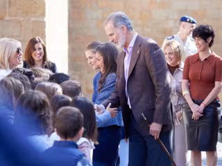 Seguidamente, se han acercado a saludar a las personas que se habían reunido en la plaza para ver su llegada con quienes han estrechado manos, se han sacado fotos y 'selfies', entre aplausos y vivas a los Reyes y la Princesa.