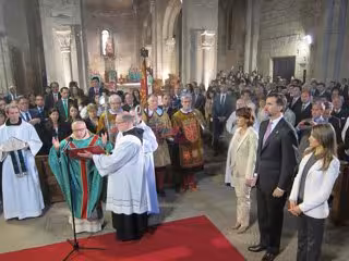 En la misa homenaje, presidida por don Felipe y doña Letizia, han participado también los miembros del Gobierno de Navarra, los principales representantes de la Comunidad foral, así como el resto de asistentes al acto de entrega del premio.