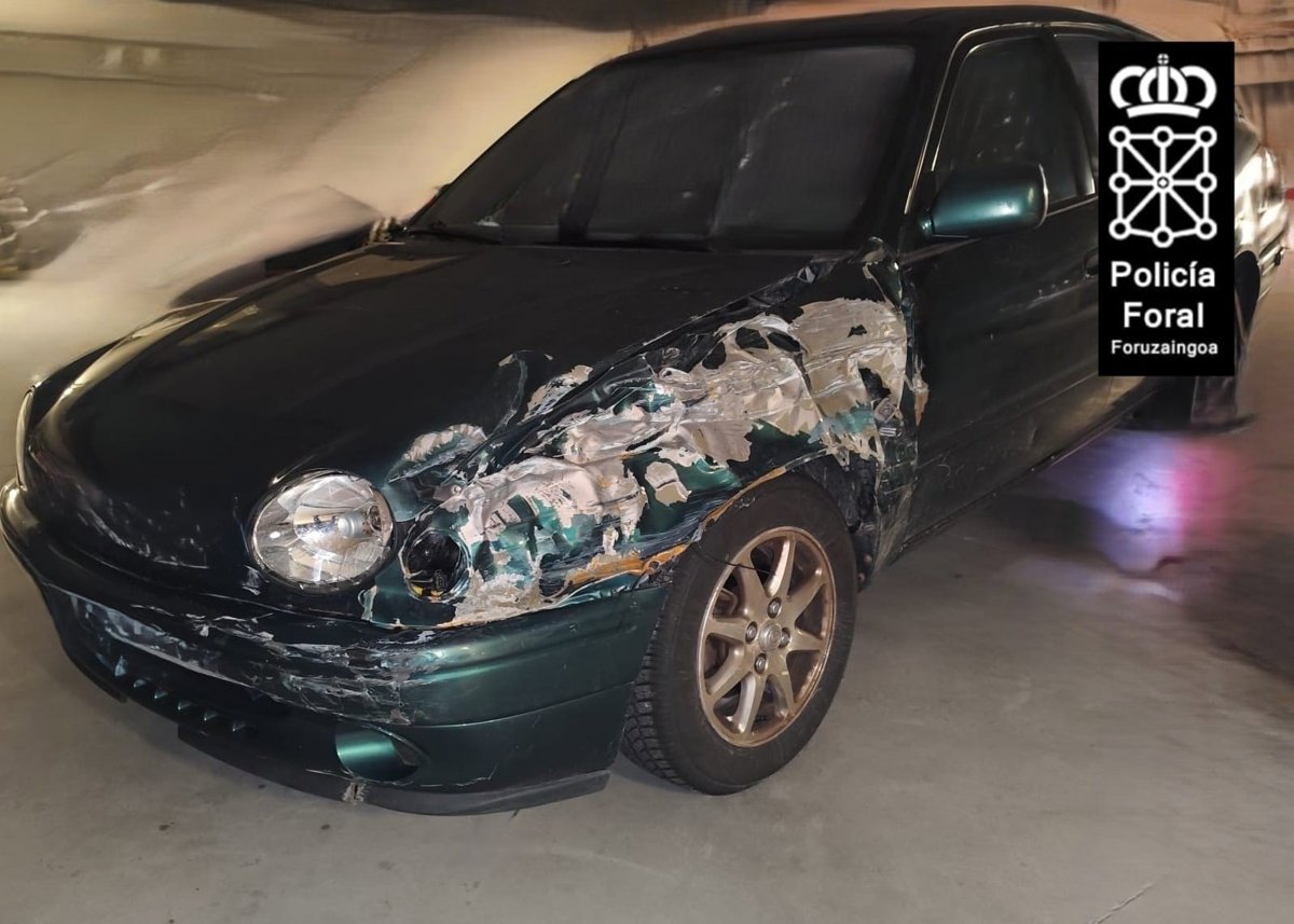 Imagen del vehículo interceptado tras darse a la fuga al arremeter contra el coche patrulla durante la persecución policial en Pamplona - POLICÍA FORAL