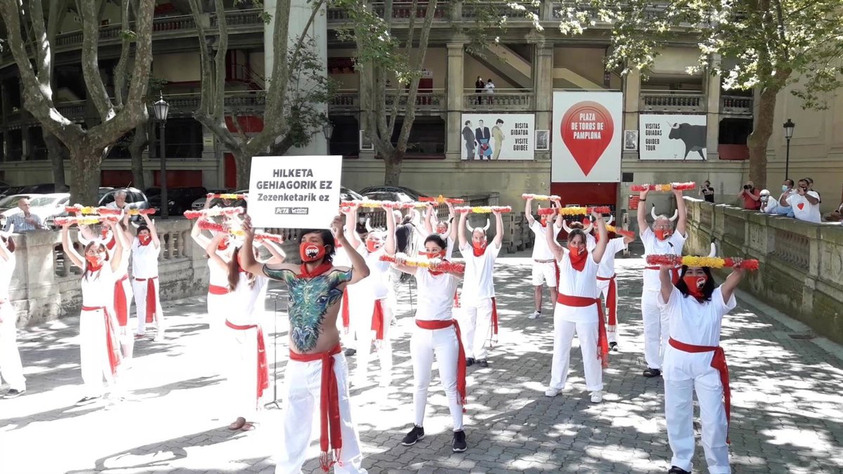 Aunque este año los Sanfermines están suspendidos por la pandemia de Covid-19, estos dos colectivos han mantenido su movilización anual en Pamplona coincidiendo con las fechas de las fiestas para expresar su rechazo a los encierros y a las corridas de toros.