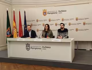 Archivo - Rueda de prensa de la portavoz del grupo municipal del PSN en el Ayuntamiento de Pamplona, Marina Curiel, junto con los concejales Xabier Sagardoy y Miguel Matellanes. - EUROPA PRESS - Archivo