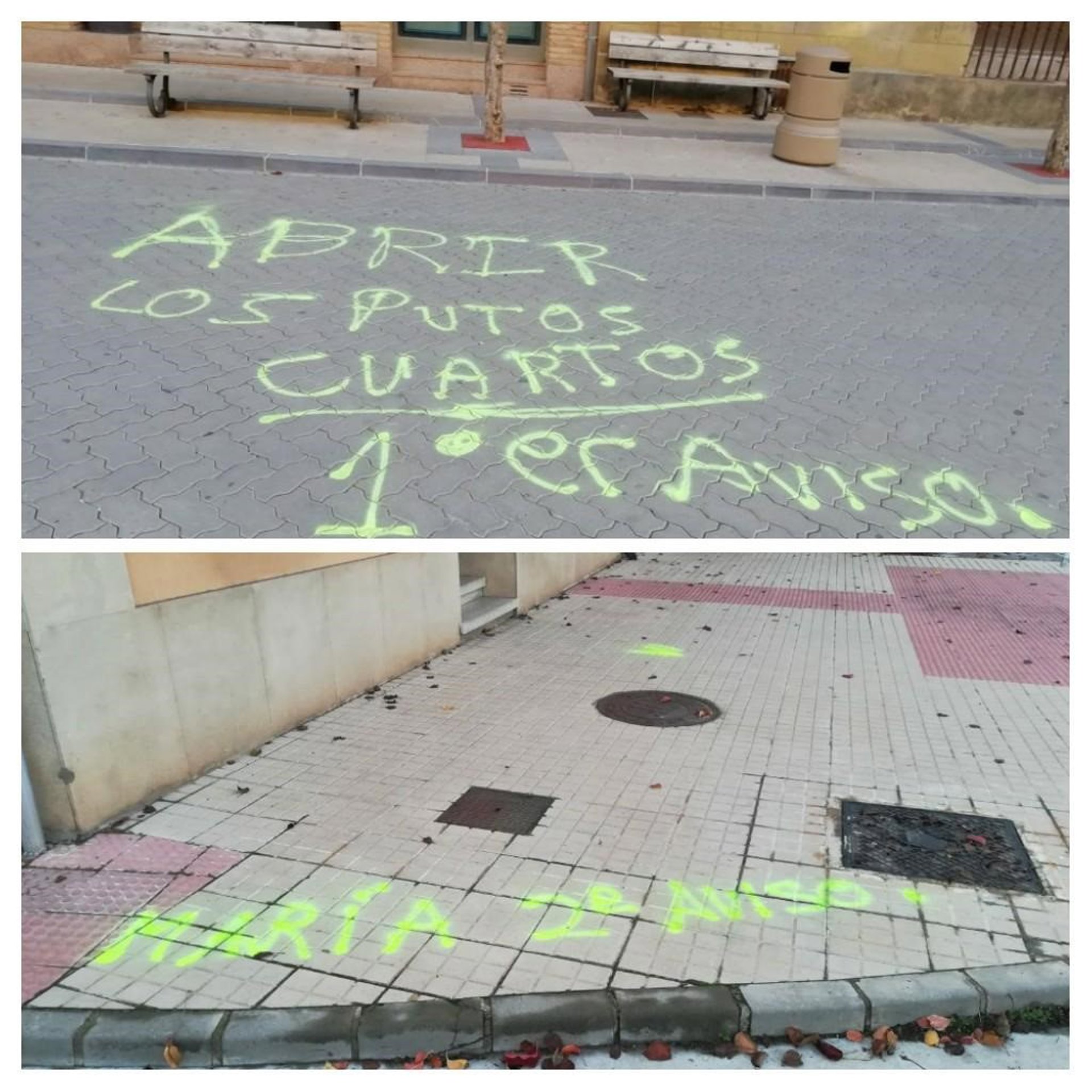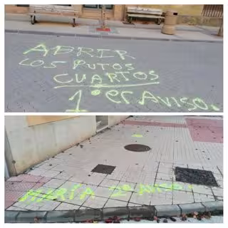 Se trata de dos pintadas en contra de las medidas restrictivas para atajar los contagios por Covid-19. La primera de ellas dice 'Abrir los putos cuartos, 1 aviso', en referencia a la prohibición de apertura de las bajeras y piperos. Esta pintada se realizó hace alrededor de un mes. La nueva pintada reza 'María 2 aviso', dirigida a la presidenta del Ejecutivo foral.