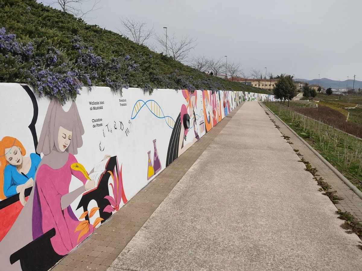 Este mural participativo es un homenaje a 47 mujeres pioneras en diferentes campos culturales, artísticos, educativos o científicos a lo largo de la historia, seleccionadas con un criterio amplio en cuanto a su actividad, origen y cronología, que de algún modo han transitado nuevas sendas. Todas ellas han abierto, de diversas maneras, camino a sus contemporáneas y a las siguientes generaciones. La selección la realizó el propio colectivo artístico en un proceso laborioso que, finalmente, se ha centrado en mujeres relevantes, pero, en su mayoría poco conocidas. Entre ellas hay ocho mujeres navarras.