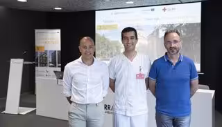 Jorge Marín, de Navarrabiomed; Nicolás Martínez, de CHN Navarrabiomed, y Juan José San Martín, de Cruz Roja Navarra - GOBIERNO DE NAVARRA