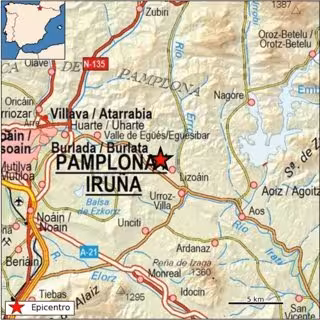 Hora y media después, a las 3.17 horas, se ha registrado otro terremoto en la misma zona, esta vez de 2,8 grados, que se ha sentido en Aoiz, Ardanaz, Beortegui, Burlada, Gorráiz, Huarte, Ibiricu, Pamplona, Sarriguren, y Urroz Villa.