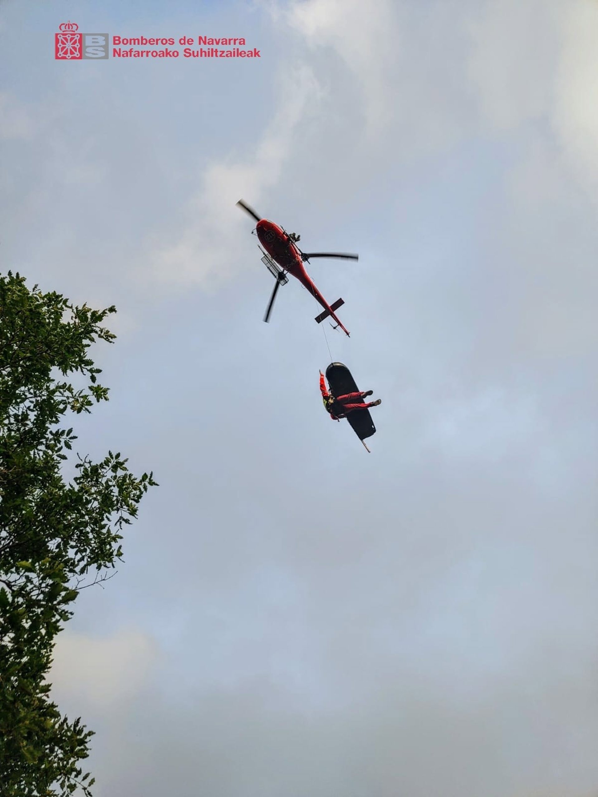 Un barranquista ha sido rescatado este jueves por la mañana tras sufrir una caída por una fuerte pendiente en Salinas de Oro. Posteriormente ha sido trasladado al Hospital Universitario de Navarra.