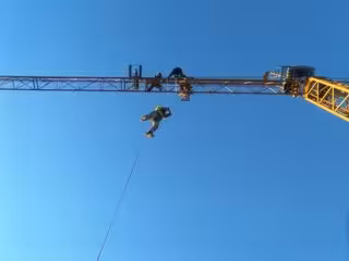 Un trabajador de 38 años ha sido rescatado este miércoles por bomberos del parque de Cordovilla al quedar atrapado en lo alto de una grúa en el Plan Sur de Pamplona.