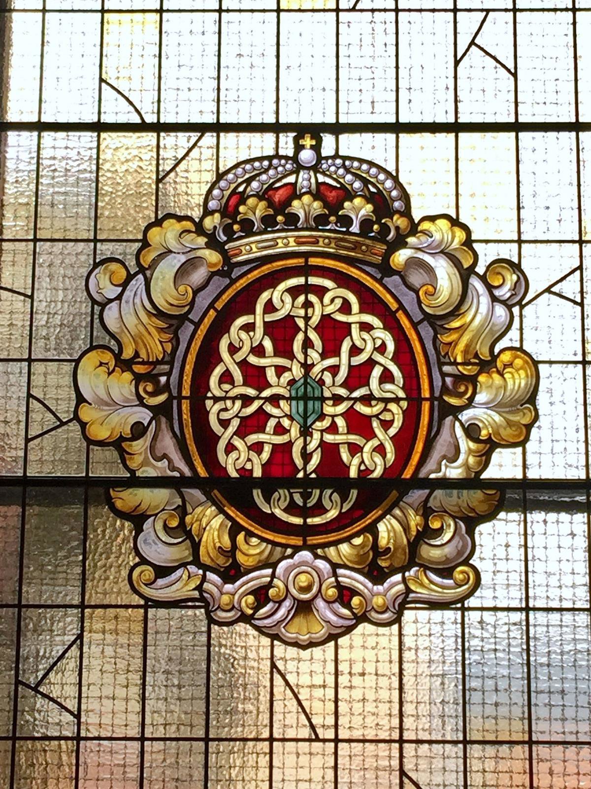 Con la retirada de esta vidriera, que ocupaba uno de los ventanales del patio interior, el Gobierno de Navarra pretende dar cumplimiento a la Ley Foral de Símbolos y a la Ley Foral de Memoria Histórica, que establecen la retirada y sustitución de la simbología del régimen franquista.