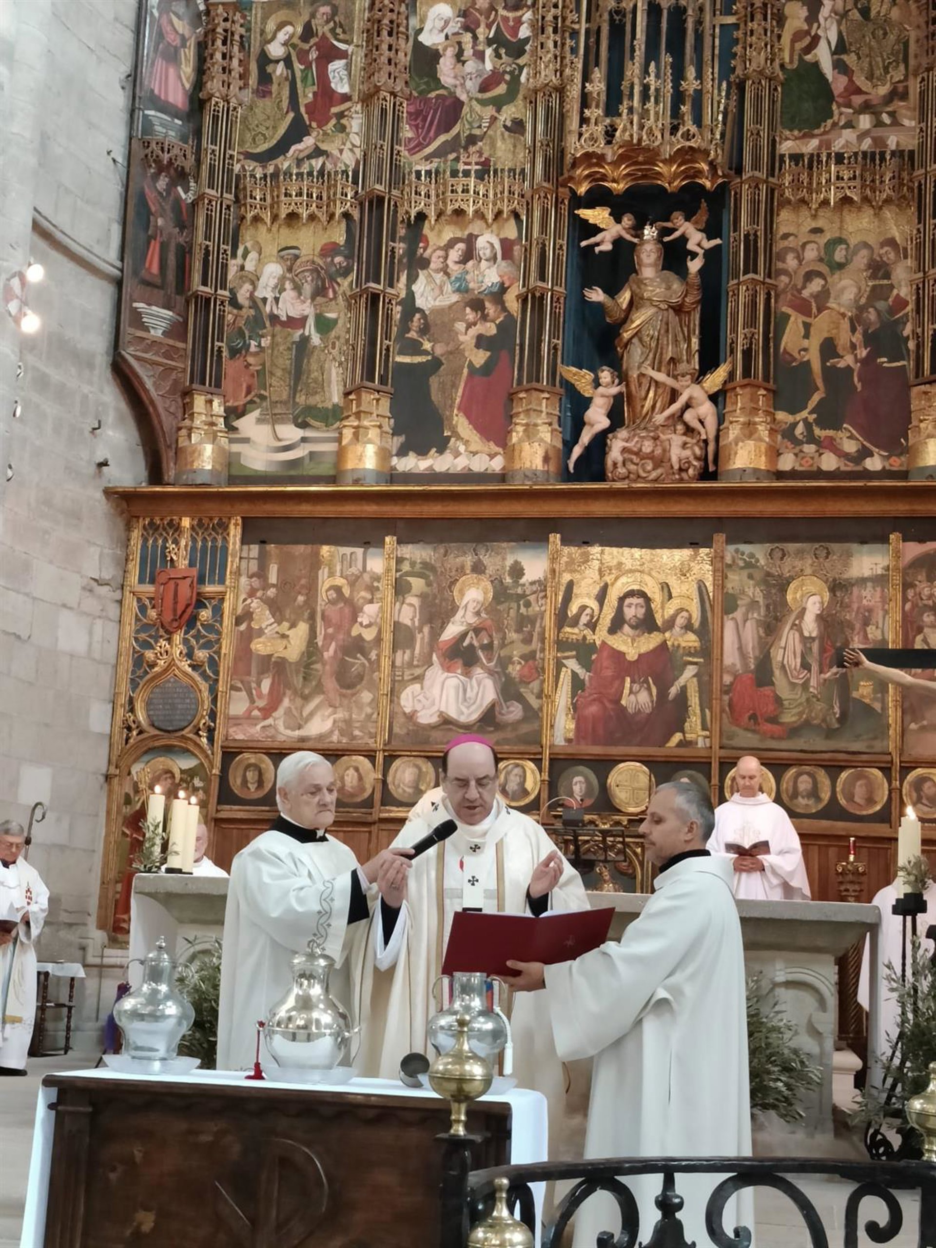 El próximo martes, 31 de marzo, en la Catedral de Tudela; y el miércoles, 1 de abril, en la de Pamplona; en ambos casos a las once de la mañana, se celebrará la Misa Crismal. Como cada año, en esa fecha los sacerdotes renovarán las promesas de su ordenación sacerdotal ante el arzobispo, quien bendecirá los óleos sagrados y el crisma que serán utilizados en las celebraciones de bautismos, confirmaciones, ordenaciones sacerdotales y unciones de enfermos, según informan desde el Arzobispado de Pamplona y Tudela.