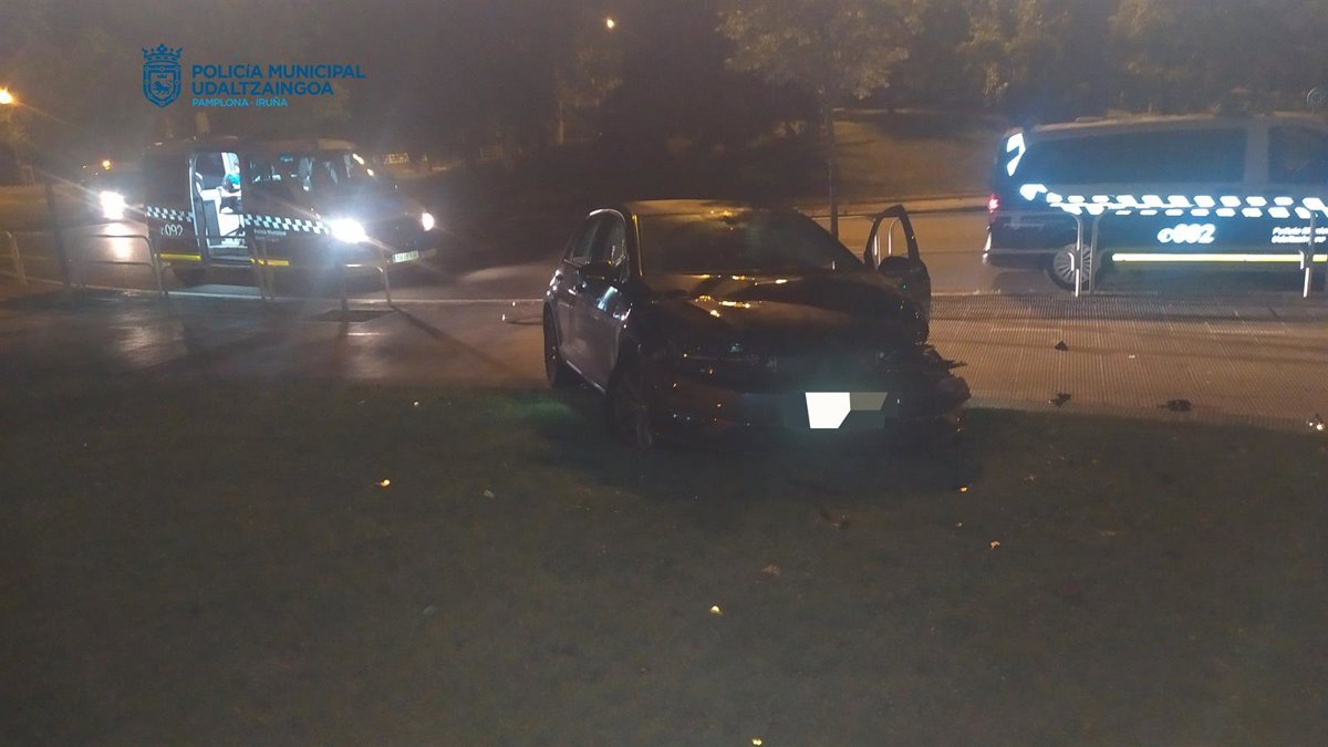 La Policía Municipal de Pamplona ha leído los derechos, esta pasada noche, a un conductor tras salirse de la vía en la calle Biurdana y dar positivo en la prueba de alcoholemia.