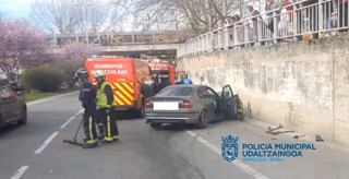 El conductor de un vehículo se salió de la vía este domingo en la avenida de Navarra de Pamplona y acabó chocando violentamente contra un muro de hormigón. Según las primeras investigaciones, la velocidad inadecuada pudo ser la causa del accidente.