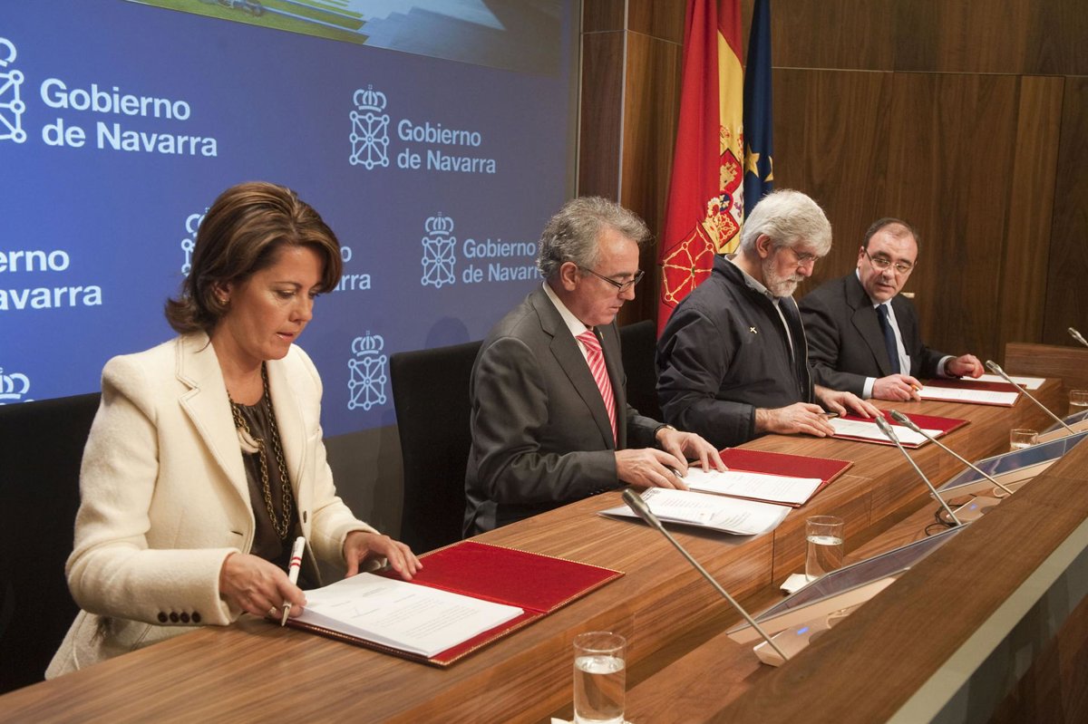 El Gobierno de Navarra, los ayuntamientos de Pamplona y Egüés y la Congregación Salesiana han firmado este jueves un protocolo de colaboración para el traslado del centro de FP. El acuerdo ha sido suscrito por el presidente de Navarra, Miguel Sanz; la alcaldesa de Pamplona, Yolanda Barcina; el alcalde del Valle de Egüés, José Anastasio Andía; y Félix Urra, en representación de la Sociedad de San Francisco de Sales, Congregación Salesiana de San Juan Bosco.
