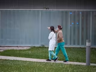 Varios sanitarios caminan por el Complejo Hospitalario de Navarra durante a Pandemia Covid-19 en Abril 28, 2020 en Pamplona, Navarra, España - Eduardo Sanz / Europa Press - Archivo
