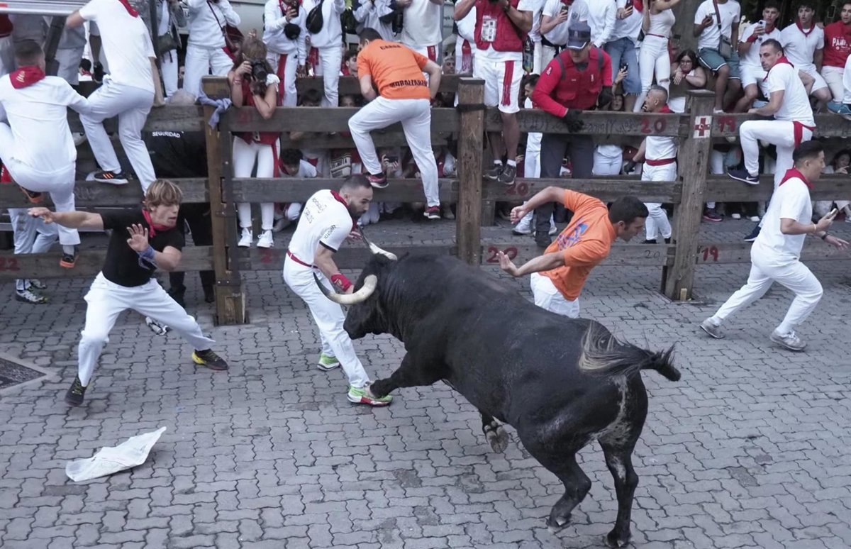 Tanto en Estafeta, como en Telefónica y en el Callejón, el toro suelto se ha arrancado para embestir a los mozos, llegando a dar a uno una voltereta. En el callejón, los mansos de cola han evitado también que este astado arremetiera contra algún corredor. En el acceso a la Plaza también se ha girado, generando situaciones muy complicadas, si bien finalmente, pastores, mozos y dobladores ya en el interior del coso han logrado que entrara en chiqueros.